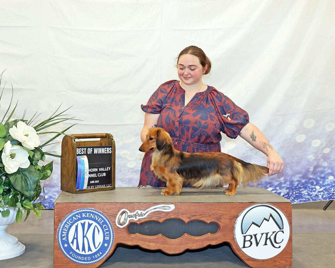 Molly is owned by a breeder friend of ours, Red Prairie Retrievers, and they offered us to lease Molly for her first litter! She is a very outgoing dog, no one is a stranger to her. Molly also is very regal and confident. We have been working hard with her this past year working towards her AKC and UKC conformation champion titles, she is 1 competition win away from earning both of them! She has also gotten to have fun with fast CAT and the AKC FIT dog titles. We are hoping to try some other things out with her as we find what her interest are!